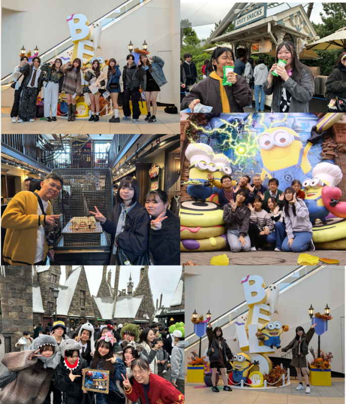 時折小雨がぱらつく空模様でしたが、生徒たちの熱気は十分。お目当てのアトラクションに向かって走ったり、友人たちと写真を撮ったりと、思い思いの時間を満喫していました。パークのあちこちで、はじけるような笑顔が見られ、忘れられない思い出ができたようです。
