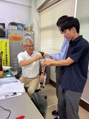 JRC部が昼休みの放送で、募金の趣旨と大切さを説明しました。生徒一人ひとりの小さな協力が、高齢者や障がいを持つ方のための福祉活動を支える大きな力となることを、熱意を持って呼びかけました。