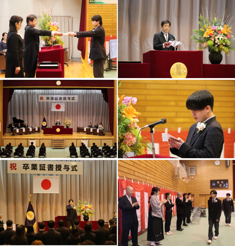 【行事報告】第77回卒業証書授与式 投稿日時 : 03/02 ishikw カテゴリ:学校行事 令和8年3月2日(月)第77回卒業証書授与式が挙行されました。 担任の呼名に対し、場内に響き渡る54名の力強い返事。高校生活が一人ひとりにとって、充実した確かなものであったことが伝わってきました。 卒業生代表による答辞では、会場全体が熱い感動に包まれました。在校生による「旅立ちの日に」、そして卒業生の「仰げば尊し」の歌声が、式場に響き渡りました。 卒業生の皆さん、ご卒業おめでとうございます。皆さんの前途が幸多きことを、心よりお祈り申し上げます。 Tweet タグ 敬愛大学八日市場 敬大八高 八敬 卒業式